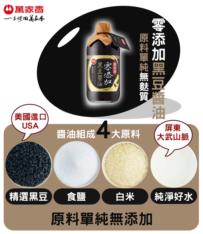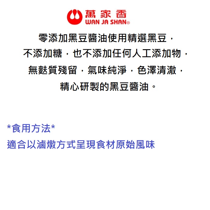 | 商品名稱 | 【萬家香】零添加黑豆醬油 |
