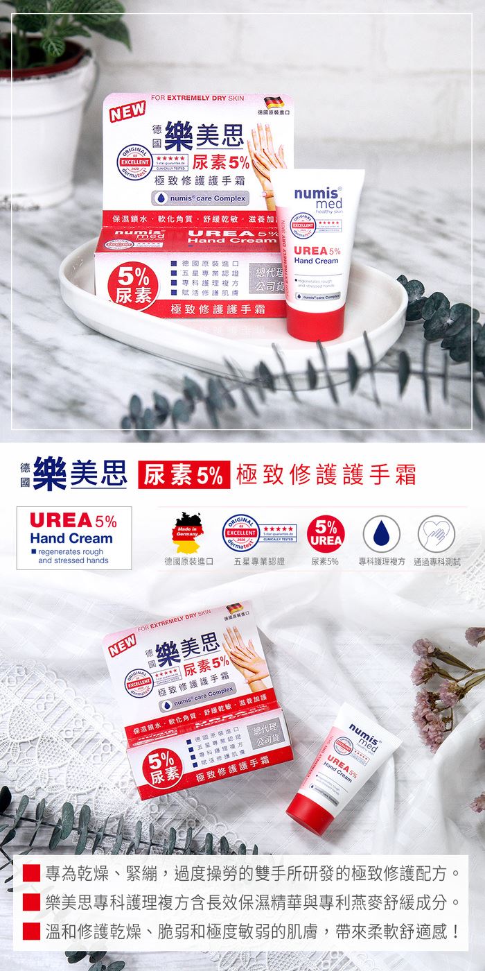 | 商品名稱/包裝內容規格 | 德國numis med 樂美思 尿素5%極致修護護手霜 20ml x 3入 |