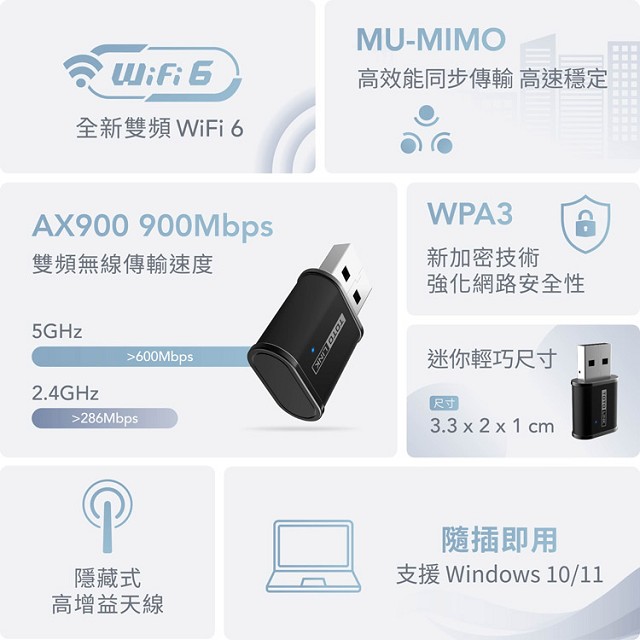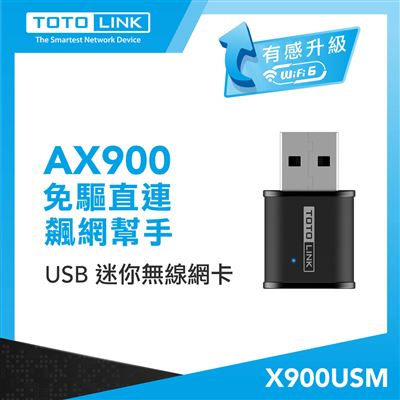 | 【商品名稱或型號】 | 【TOTOLINK】X900USM AX900 Wi-Fi 6 USB迷你無線網卡(免驅動) |