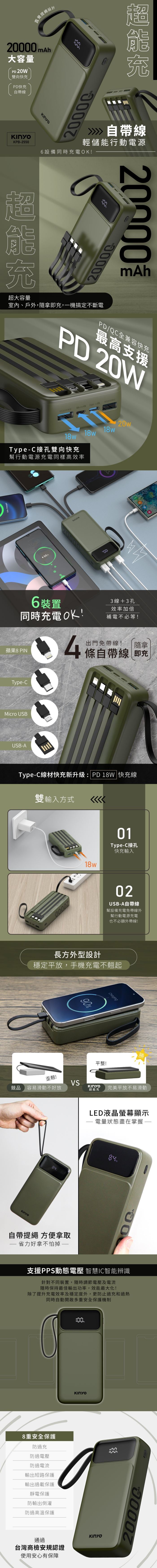 | 【商品名稱或型號】 | 【KINYO】超能充.自帶線輕儲能行動電源 KPB-2550 |
