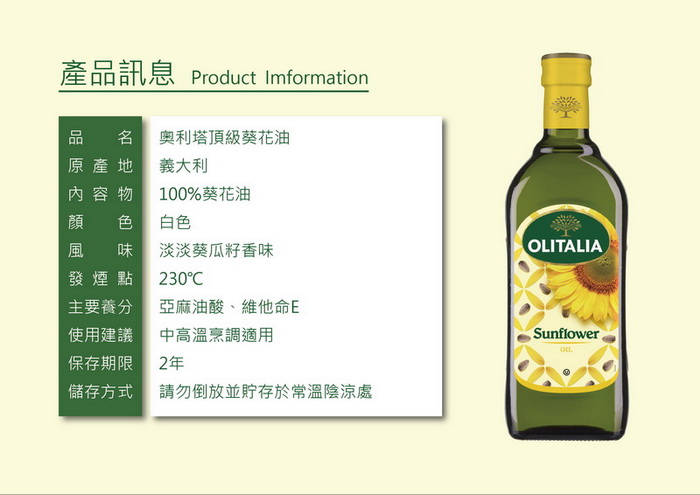 Olitalia奧利塔葵花油禮盒組(1000mlx6瓶) |