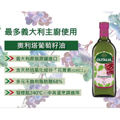 Olitalia奧利塔葡萄籽油+玄米油禮盒組(1000mlx6瓶) 各3瓶 |