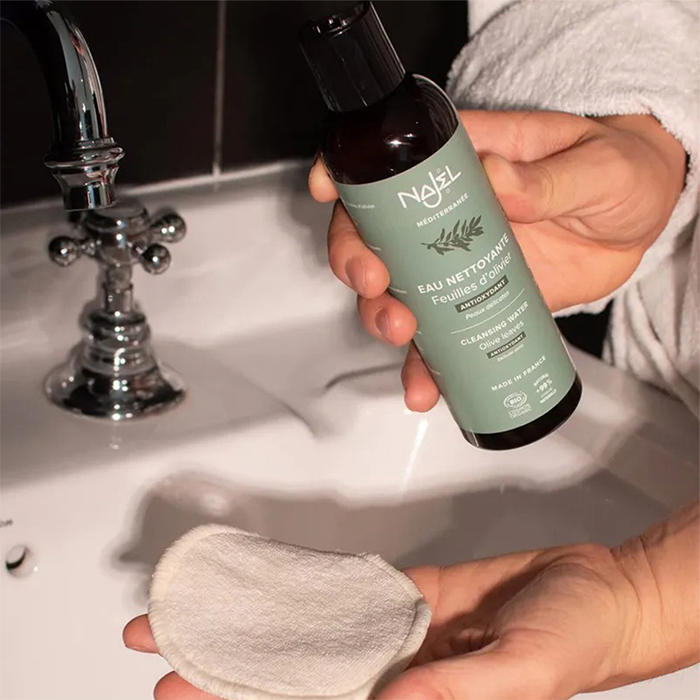 NAJEL橄欖葉純露具有抗氧化作用,可在早上和晚上用於臉部和頸部。