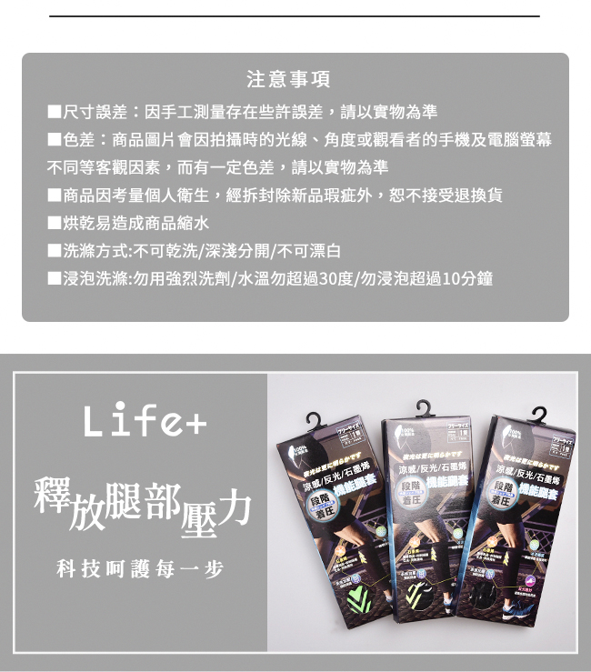 | 【商品名稱或型號】 | 【Life+】MIT石墨烯新一代機能壓縮腿套 [3雙組] |