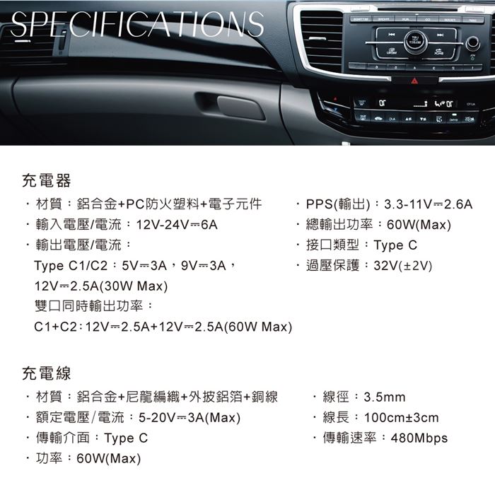| 【電壓】 | Type C1/C2:5V⎓3A,9V⎓3A,12V⎓2.5A(30W Max) |