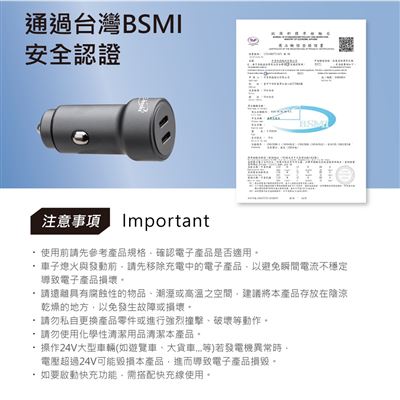 | 【材質或成分】 | 車充:鋁合金 PC防火塑料 電子元件 充電線:鋁合金 尼龍編織 外披鋁箔 銅線 |