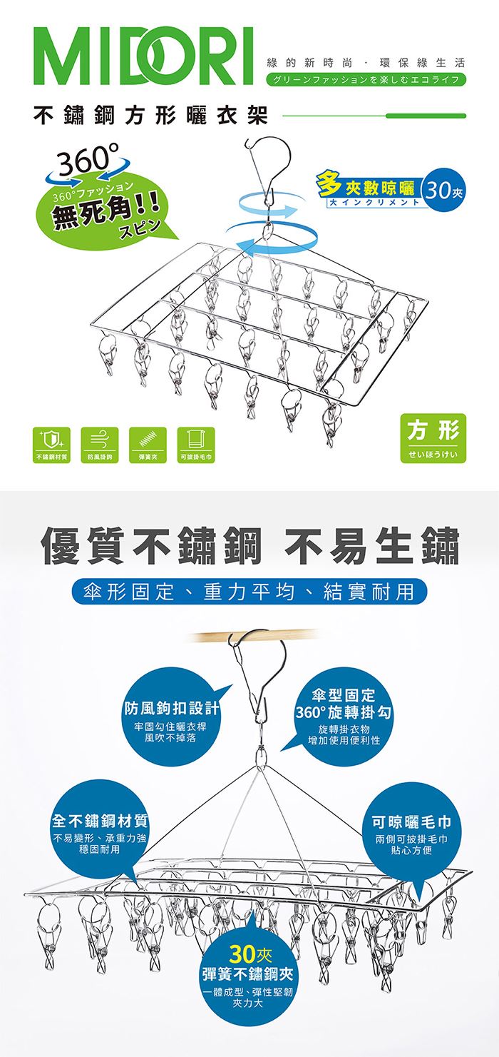 | 商品名稱 | MIDORI不鏽鋼方形曬衣架30夾 |