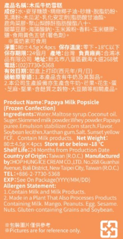 | 商品名稱 | 北回 木瓜牛奶雪糕4入 |