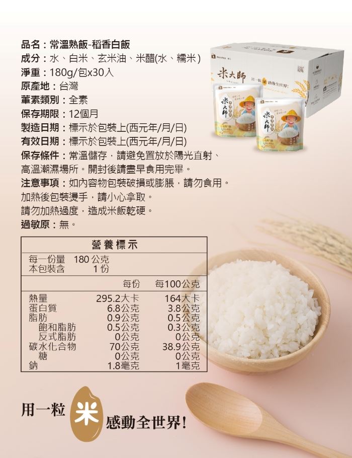 | 商品名稱 | 常溫熟飯-稻香白飯 |