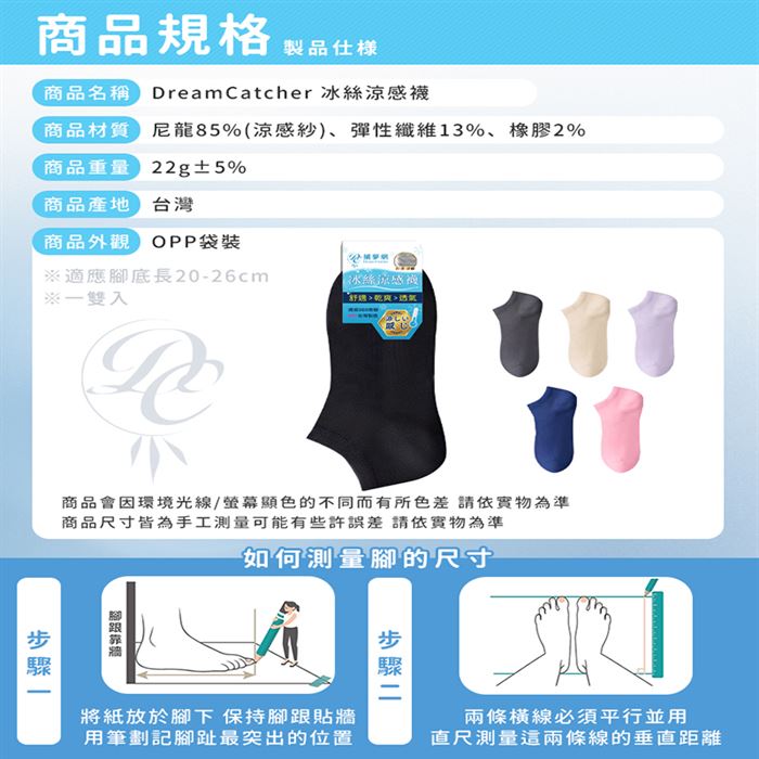 | 【商品名稱】 | 【捕夢網】冰絲涼感襪 - 6色可選 [20雙入團購組] |