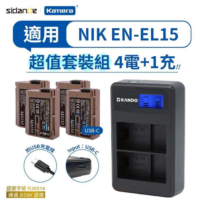 - 底座充電模式-搭配 KANDO 液晶雙槽充電器 for NIK EN-EL15,可一次為兩顆電池充電,讓充電更靈活