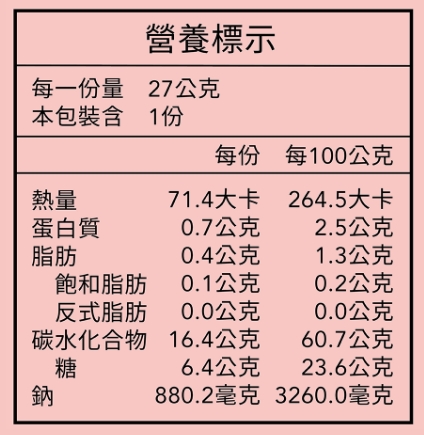 | 包裝內容/商品規格 | 27g/袋*10 |