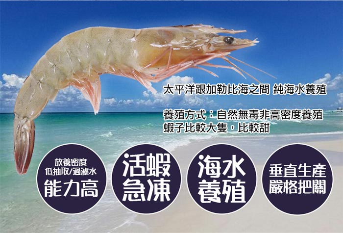 | 商品名稱 | 巴拿馬活凍白蝦3盒(淨重650g/盒/27尾) |