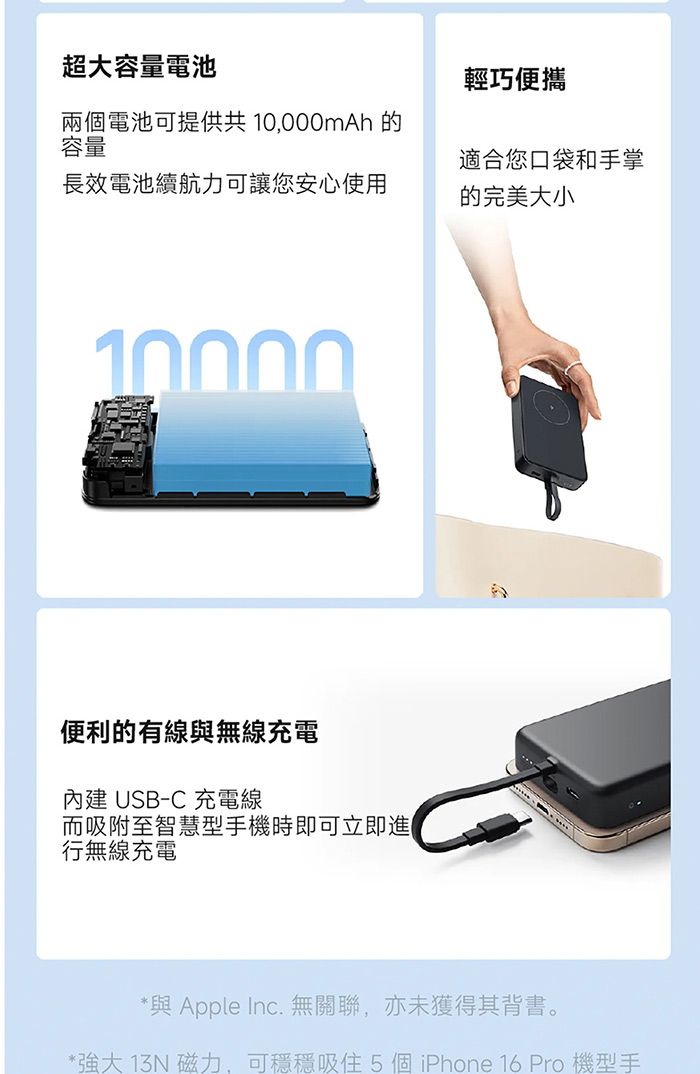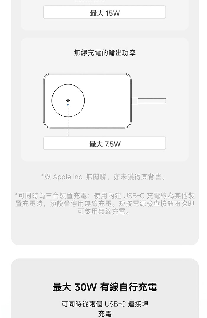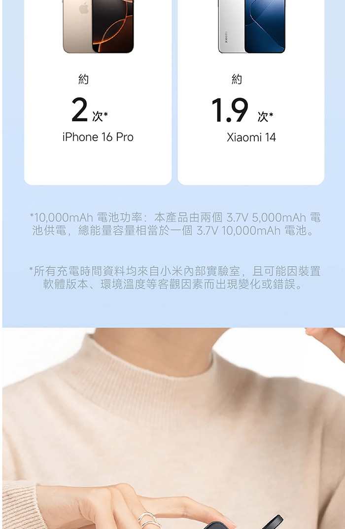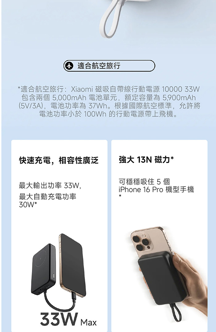 | 【內容物】 | Xiaomi 磁吸自帶線行動電源 10000 33W 使用者手冊 x1 |
