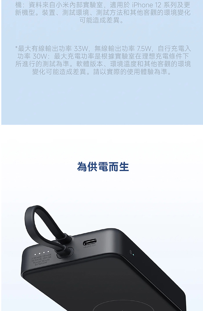 | 【商品名稱或型號】 | Xiaomi 磁吸自帶線行動電源 10000 33W |