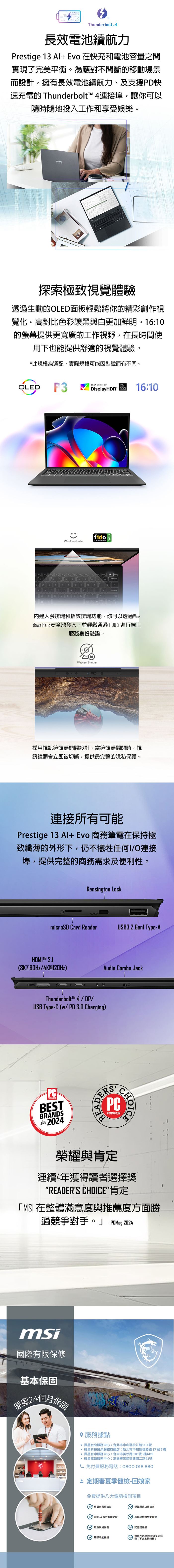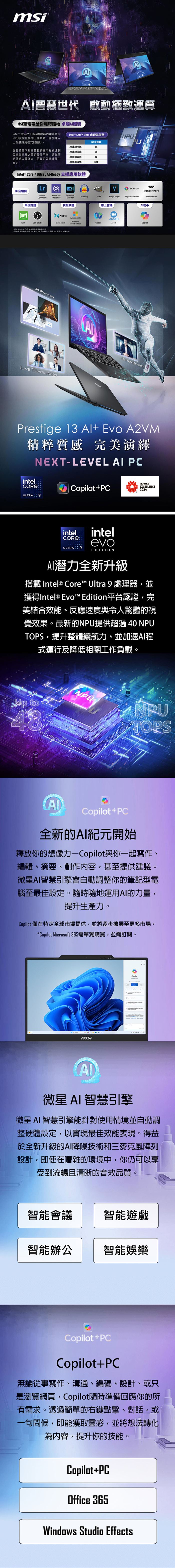 | 【商品名稱或型號】 | MSI微星 Prestige 13 AI+ Evo A2VMG-011TW 13.3吋輕薄商務筆電(Intel Core Ultra 9 288V/32G/1TB SSD/Win11Pro) |