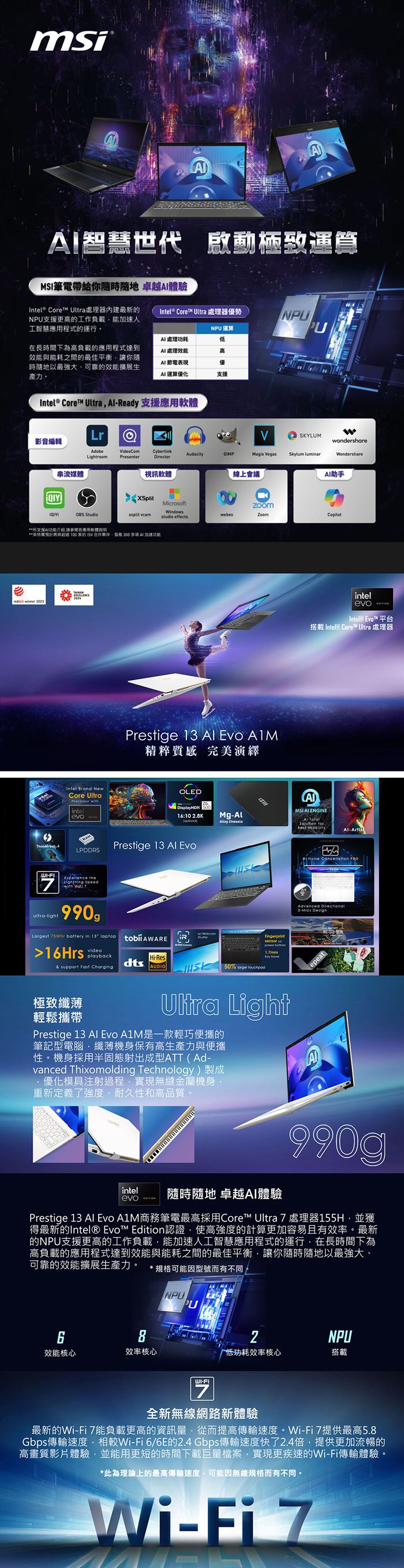 | 【商品名稱或型號】 | MSI微星 Prestige 13 AI Evo A1MG-210TW 13.3吋輕薄商務筆電(Intel Core Ultra 7/32G/1TB SSD/Win11Pro) |