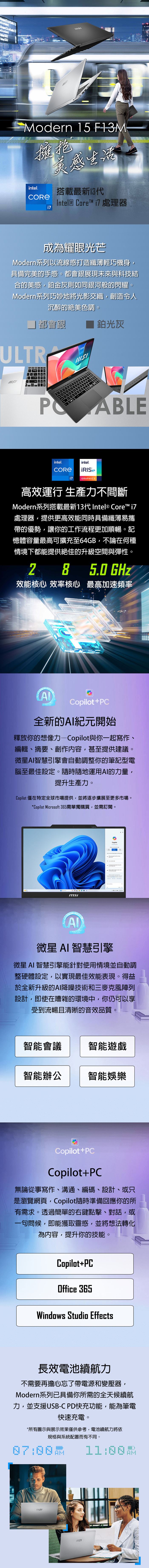 | 【商品名稱或型號】 | MSI微星 Modern 15 F13MG-240TW 15.6吋效能筆電(i7-1355U/16G/512G SSD/Win11) |