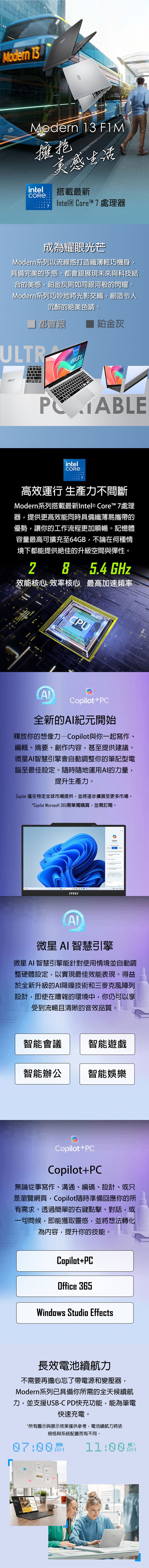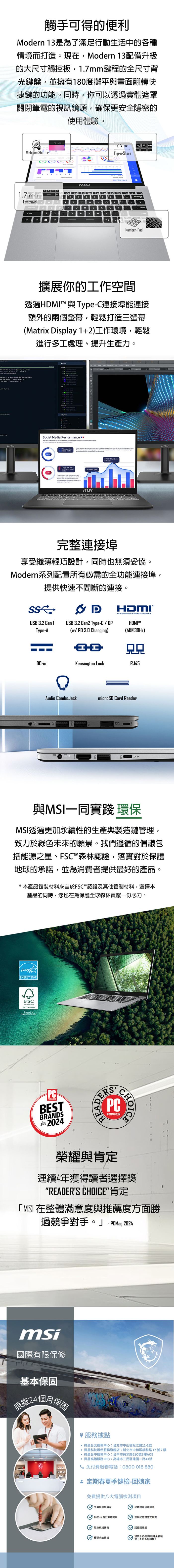 | 【商品名稱或型號】 | MSI微星 Modern 13 F1MG-001TW 13吋輕薄商用筆電(Core 7 150U/16G/1TB SSD/W11) |