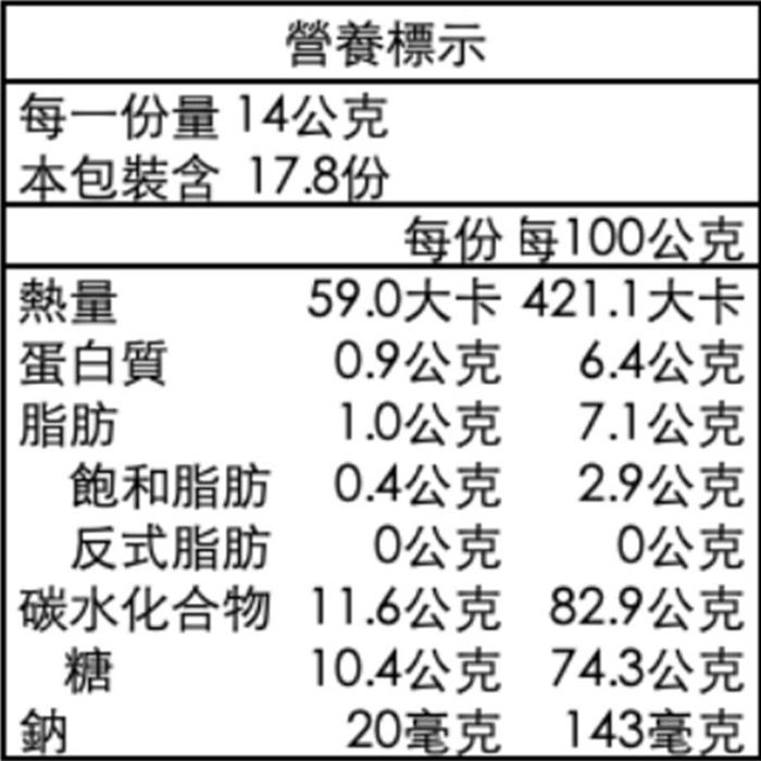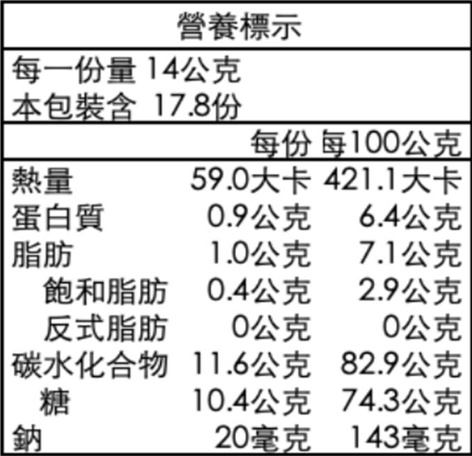 | 營養標示 | 如圖片所示,此營養標示數據 依台灣法規為基礎 |