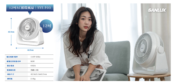 | 商品名稱 | 【SANLUX 台灣三洋 】 12吋AC循環風扇(SYEF-F03) |