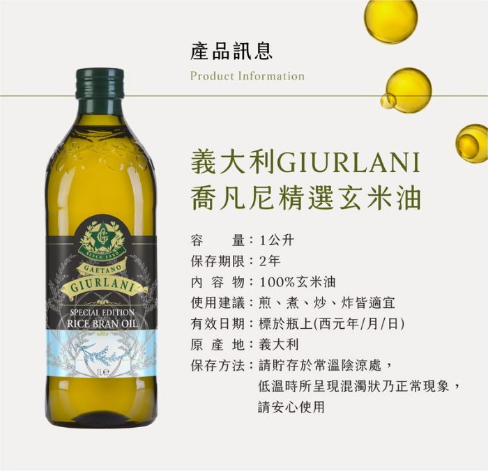 義大利Giurlani喬凡尼玄米油禮盒組(1000mlx2瓶) |