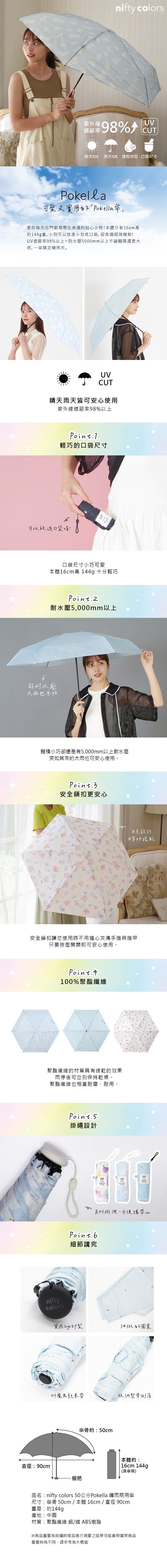 | 【商品名稱或型號】 | 【nifty colors】50公分Pokella 晴雨兩用傘 - 3款可選 |