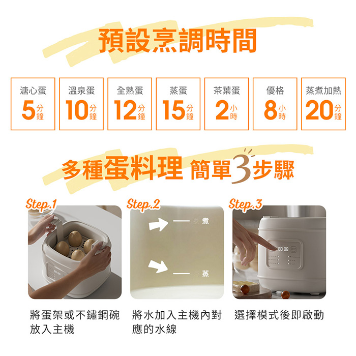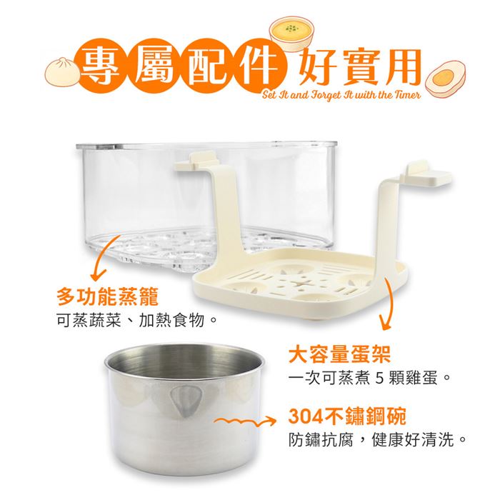 內附304不鏽鋼碗&專屬蛋架,蒸多變