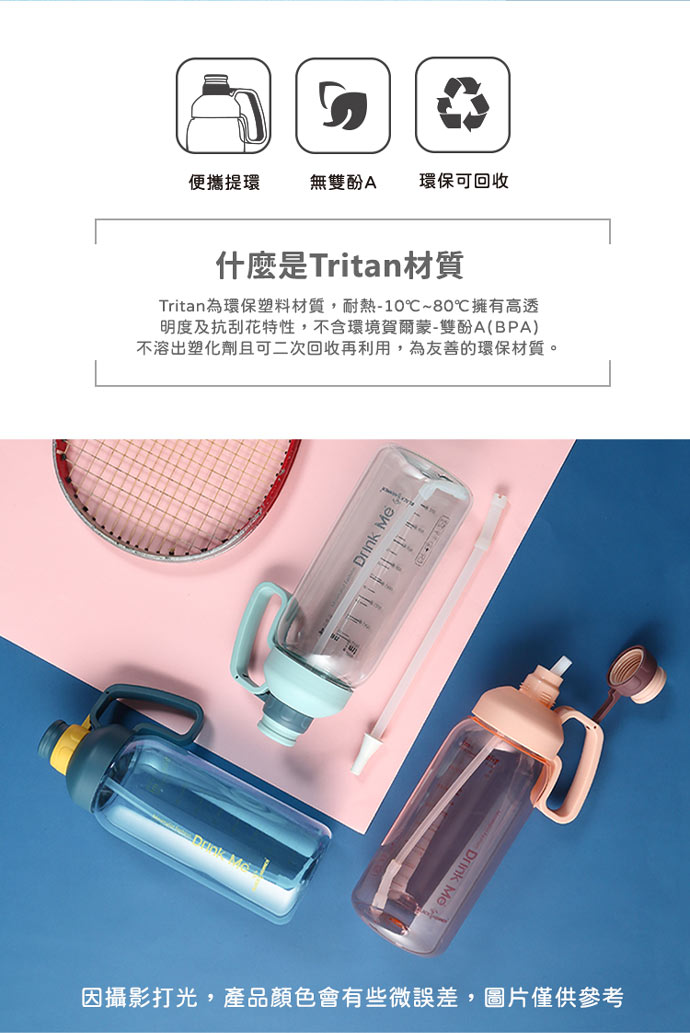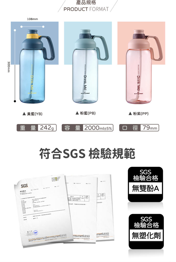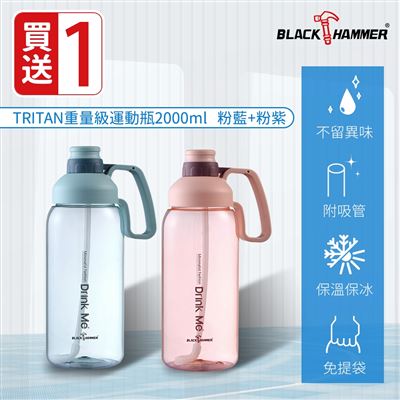 | 商品名稱 | 買一送一【BLACK HAMMER】 Drink Me TRITAN重量級運動瓶2000ml-粉藍+粉紫 |