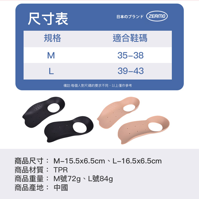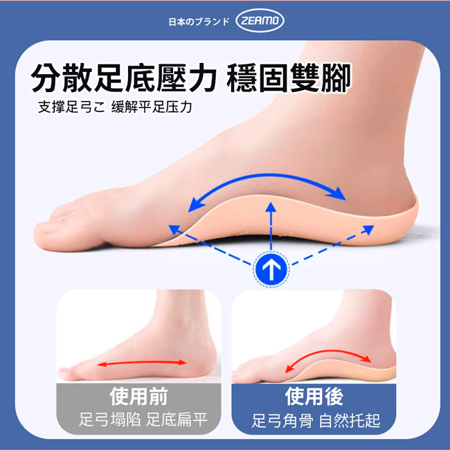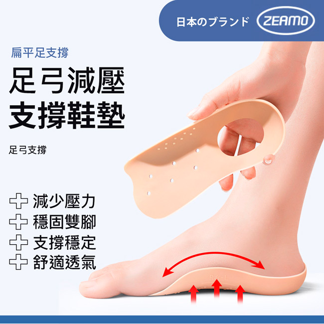 | 【商品名稱】 | 【ZEAMO】日本足弓減壓支撐鞋墊 - 2色可選 |
