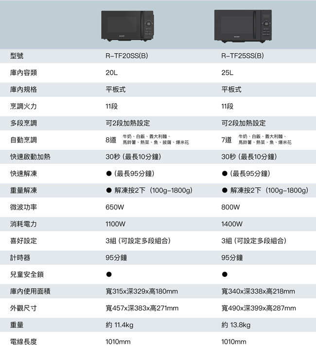 | 商品名稱 | 【SHARP夏普】25公升平板式定頻微波爐 R-TF25SS(B) |
