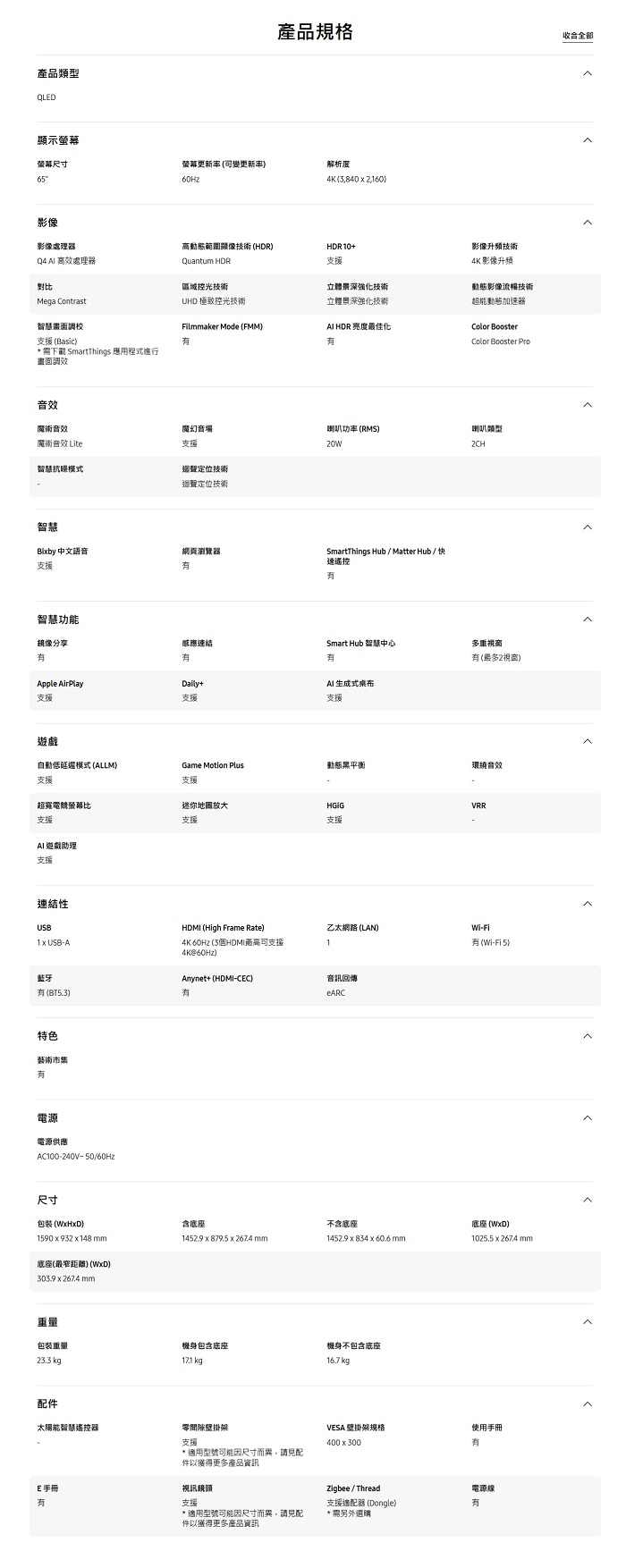 | 商品名稱 | Samsung Vision AI 65型 QLED QEF1 4K 智慧顯示器 (2025) |