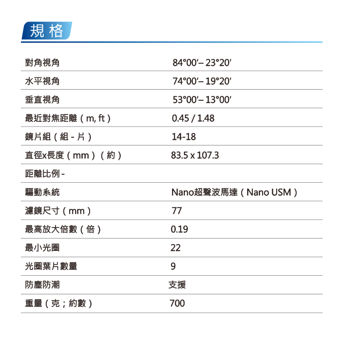 | 【保固說明】 | 鏡頭享非人為因素保固一年(如有碰撞,外拆,摔落,進水,進沙,清洗,發霉,外修等等不在保固範圍內) |