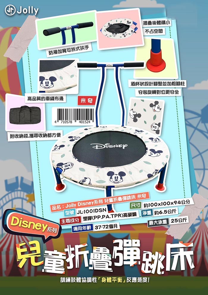 | 商品名稱 | Jolly-Disney系列兒童折疊彈跳床-米奇(宅配免運/離島不配送) |
