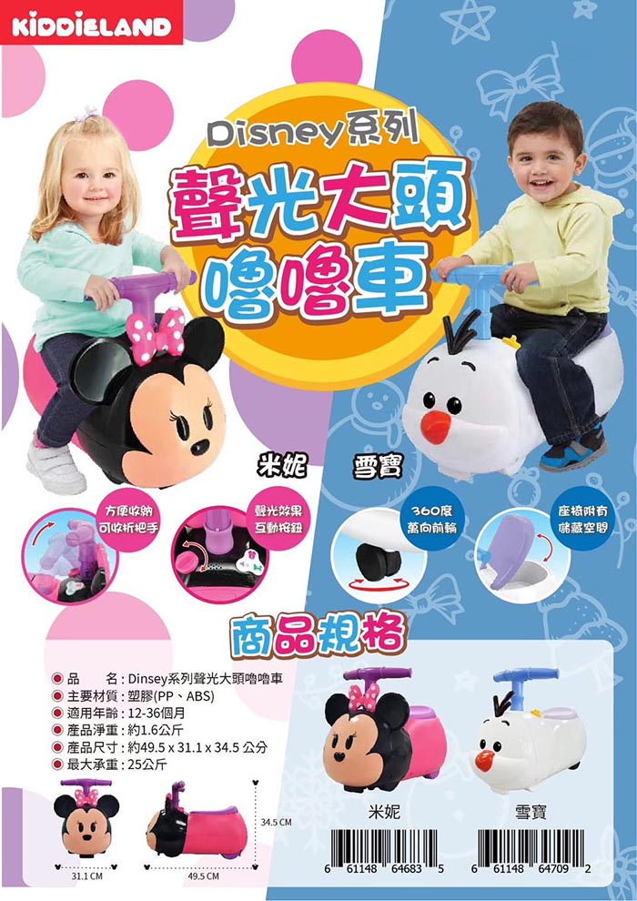 Disney系列聲光嚕嚕車,可愛造型超吸睛