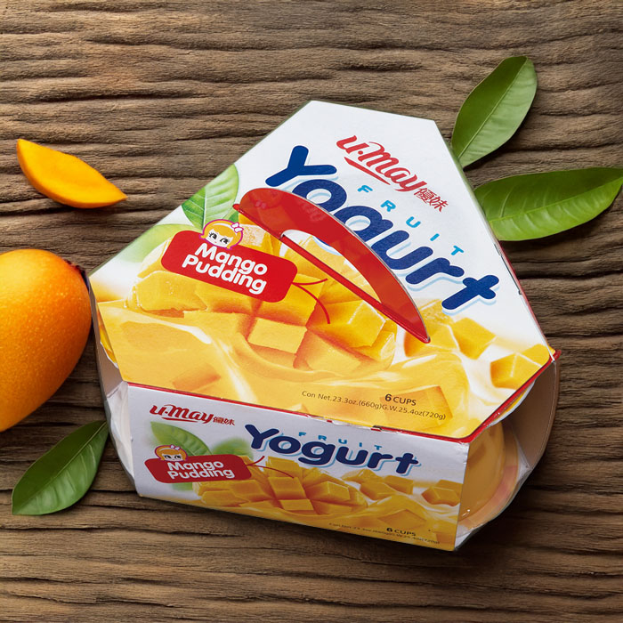 使用優質的牛奶發酵原液與果汁調製而成 並加入自創軟Q有勁的梅花凍丁,口感豐富。 此外,本公司運用優質原料及先進技術,做到打開產品封膜時不滴水, 其口感柔嫩適中又兼具安全性,是大人小孩都適合的優質點心!