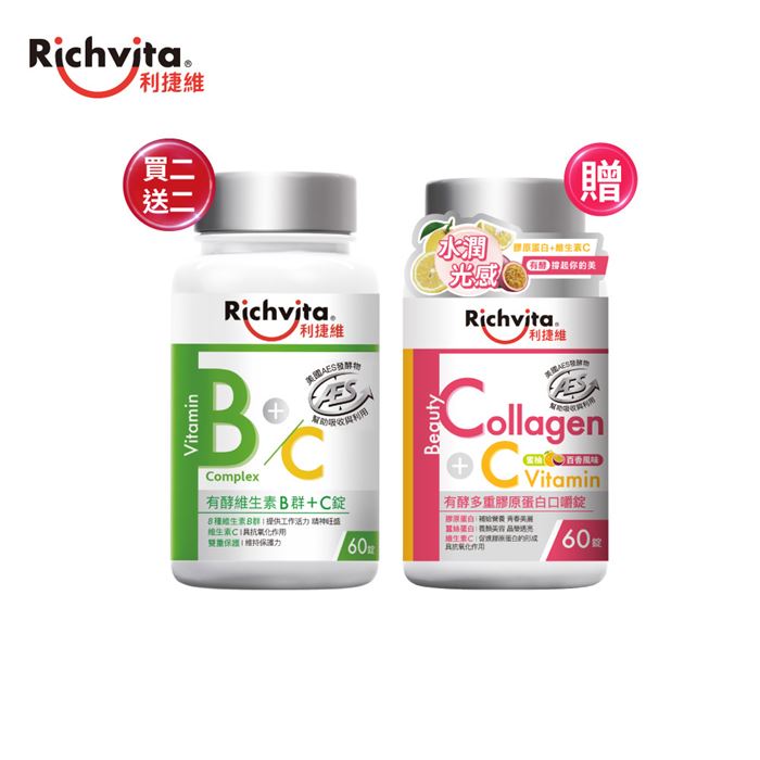 | 商品名稱 | 【買二送二】利捷維有酵維生素B群+C錠 60錠 (贈膠原蛋白口嚼60錠) |