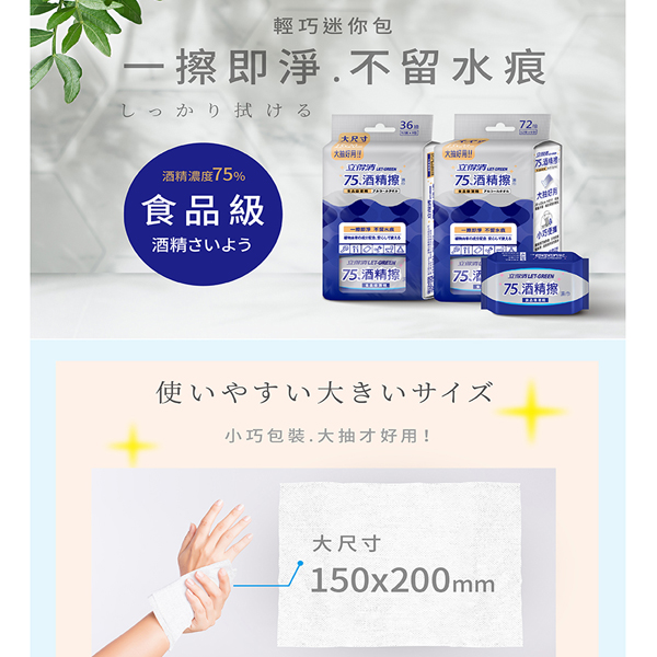 | 包裝內容/商品規格 | 立得清 75%酒精擦迷你濕巾12抽6入組 |