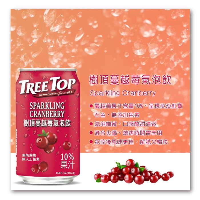 | 商品名稱 | 樹頂蔓越莓氣泡飲_ 320ML_鋁罐 |