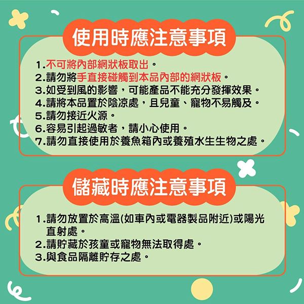 3.請注意如受到風的影響,可能產品不能充分發揮效果。