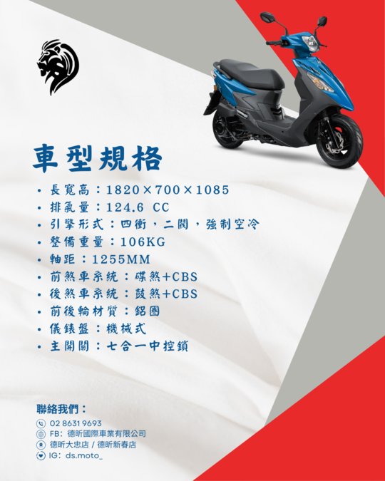 我們所提供的機車為全新產品,並提供以下保證: 1.保固期限:2年 2.保固範圍:依原廠保證書内容為準 3.保固來源:原廠保固 顧客諮詢服務中心:本站客服中心 |