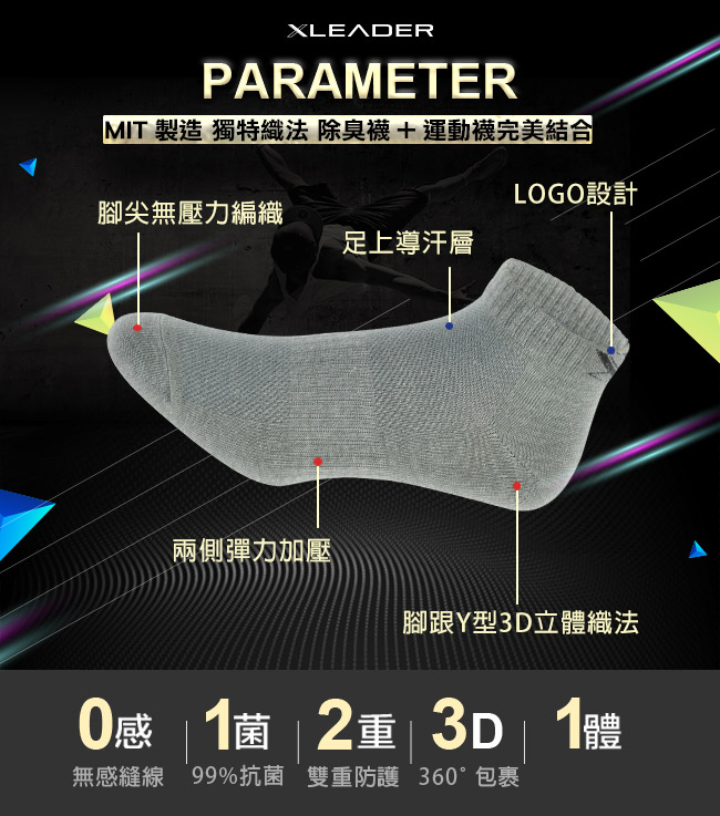 | 【商品名稱】 | 【Leader X】經典素色款 休閒運動除臭襪(男款/灰色)(ST-03) [3雙組] |