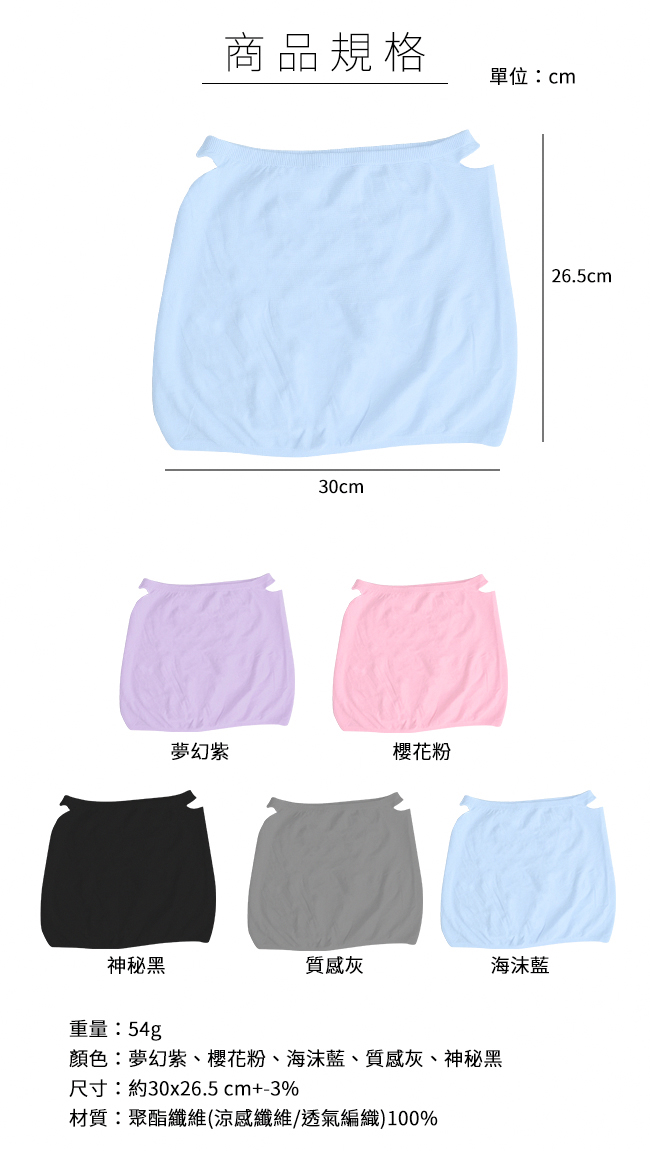 | 成分 | 聚酯纖維(涼感纖維/透氣編織)100% |