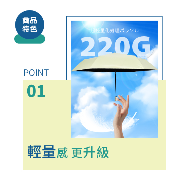 6k羽量級堅韌傘骨,比同級商品更輕巧耐用