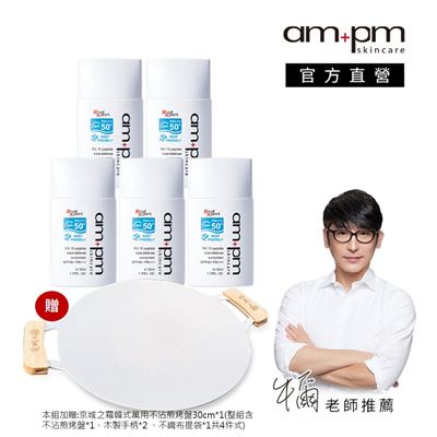 | 商品名稱/包裝內容規格 | ampmRX10胜肽極效防曬液SPF50+ PA+++50ml*5瓶+京城之霜韓式萬用不沾煎烤盤30cm(燕麥色)*1組 |
