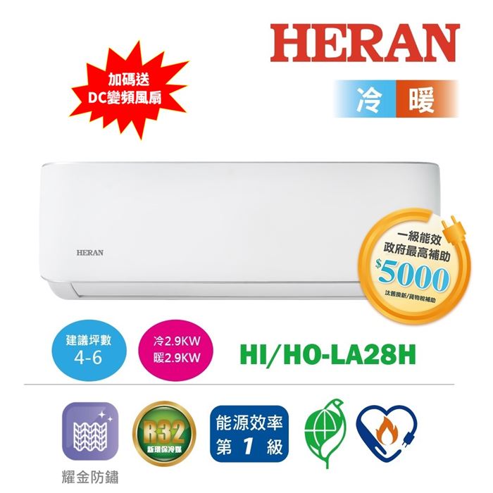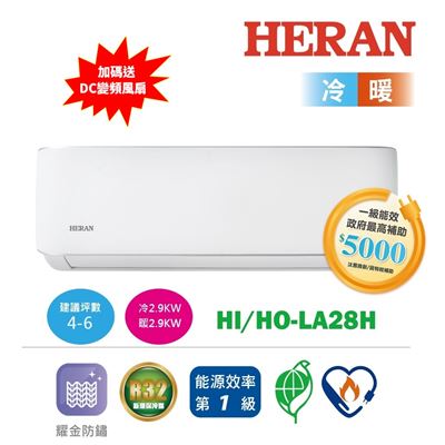 | 商品名稱 | 禾聯HI/HO-LA28H變頻1級能效冷暖空調(4-5坪) |