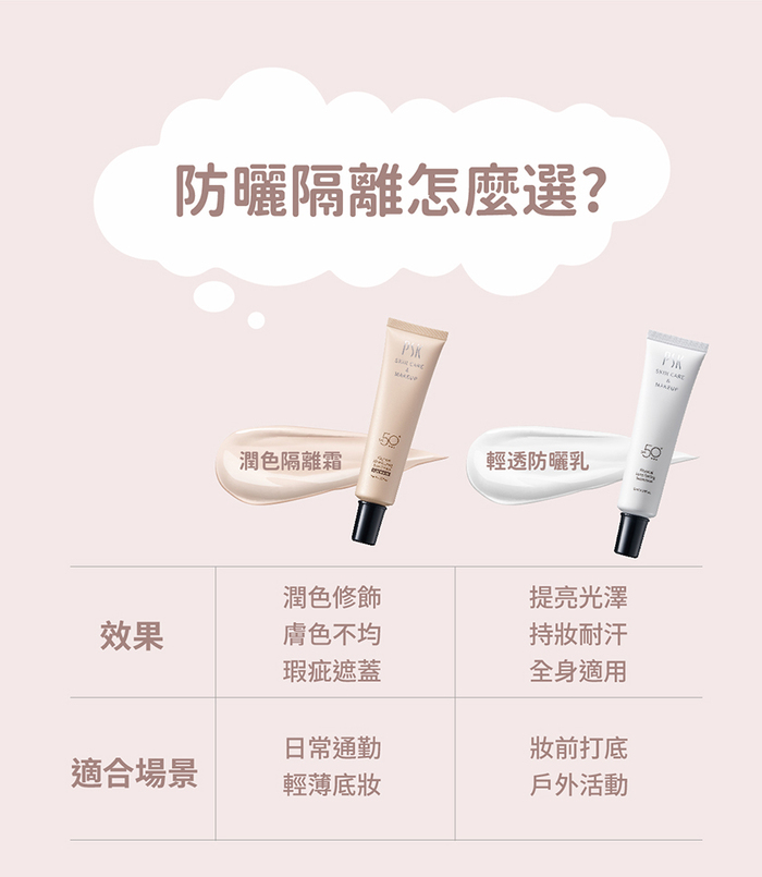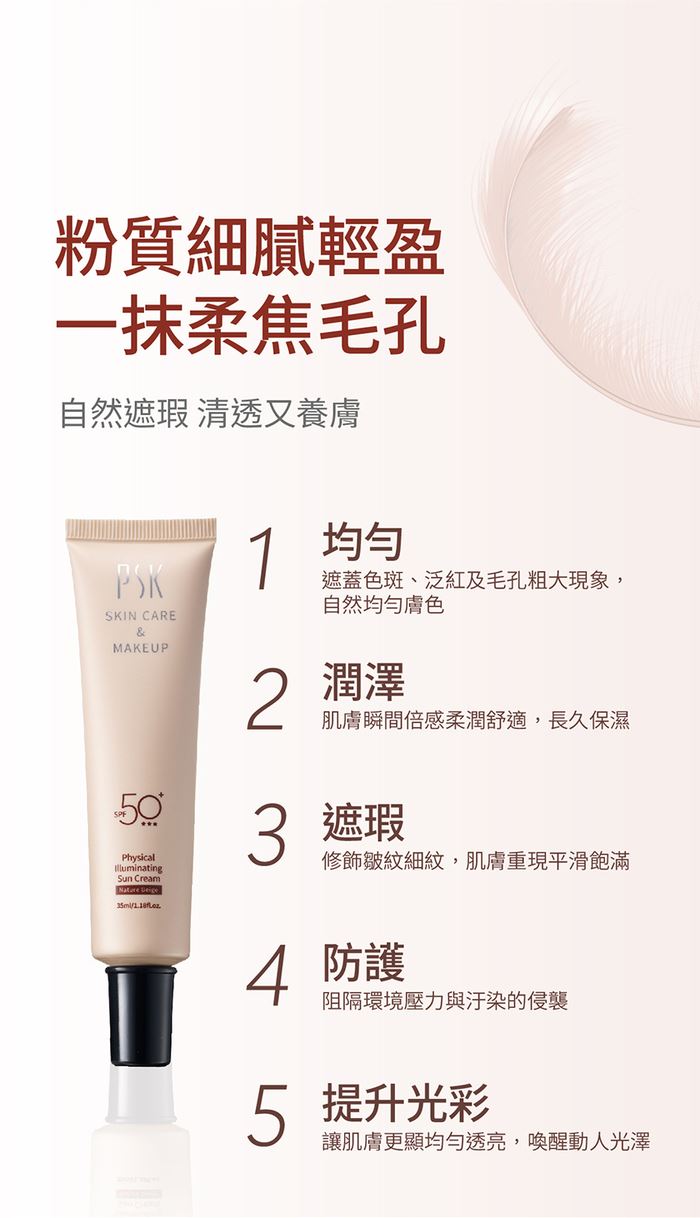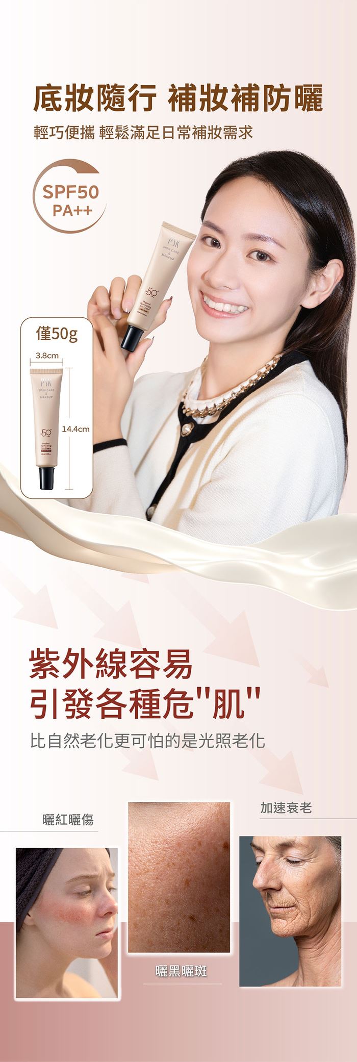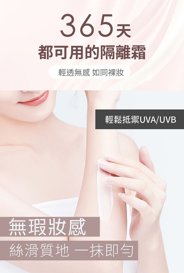 純物理高係數SPF50+★★★潤色隔離霜,水潤質地,輕透防護不悶痘