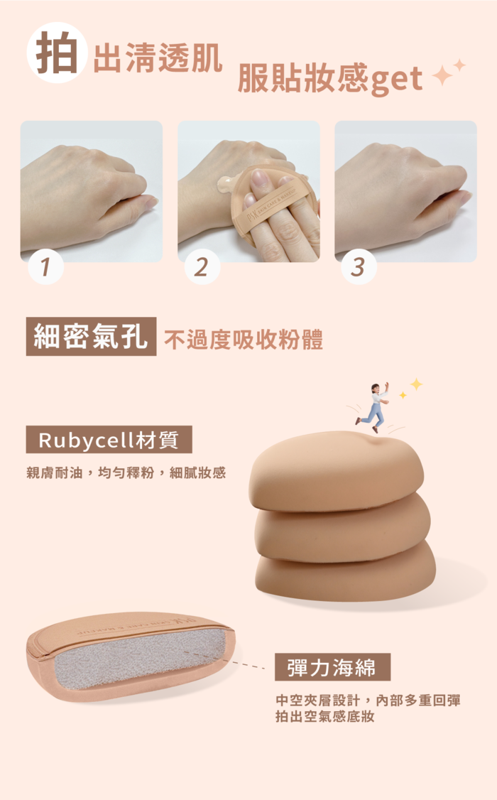 Rubycell專業零粉痕氣墊粉撲,採用採用韓國高規Rubycell材質