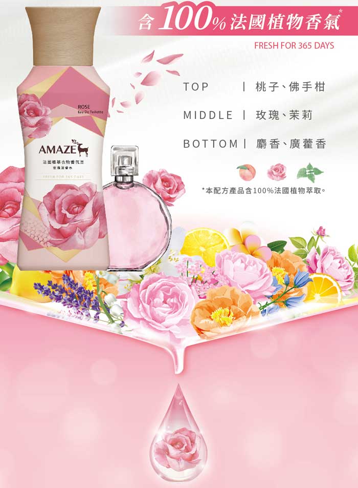 | 商品名稱 | 【Amaze】法國植萃衣物香氛豆-玫瑰淡香水(450ml)x4入組 |