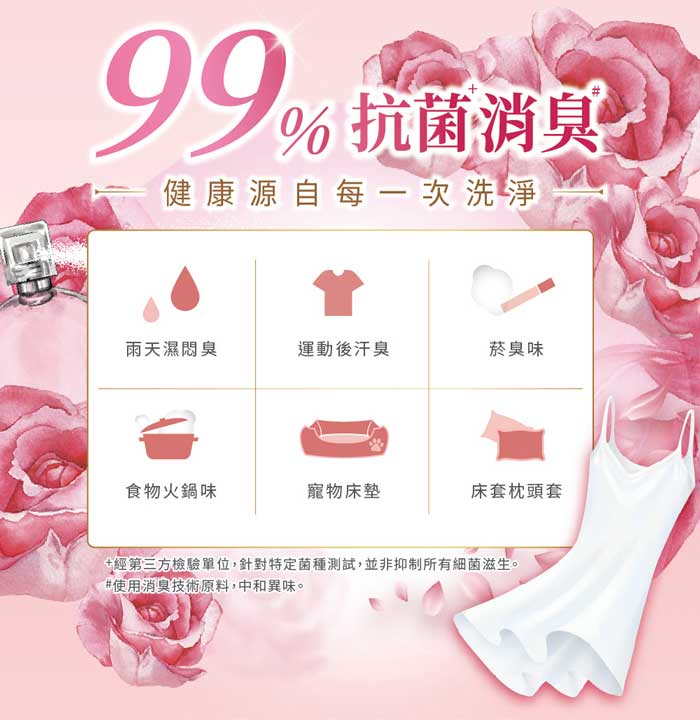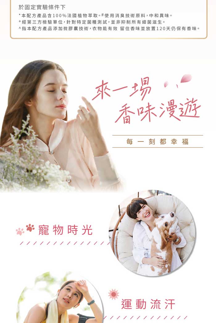 | 成分 | 植萃因子、留香因子、抗菌因子、消臭因子、微膠囊 |